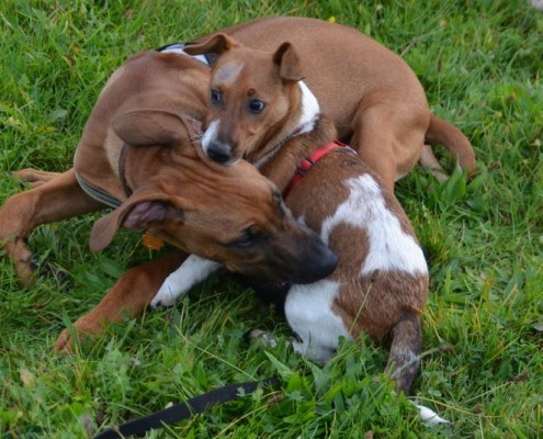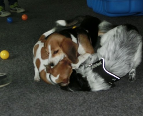 Spielend für das Leben lernen, so heißt das Motto meines Welpentrainings! Mit der 3. Lebenswoche erreicht ein Welpe die sozial sensible Phase. Wichtiger Bestandteil der sogenannten Sozialisierungsphase, die max. bis zur 20. Lebenswoche reicht, ist neben vielen Erkundungen vor allem ein positiver Kontakt mit seiner belebten Umwelt. Dies wird im Welpentraining geübt, wo nach Herzenslust gespielt und getobt werden darf. Mit einem Welpen zu spielen macht Spaß und ist spannend. Aber es ist eben nicht nur Spiel, sondern gleichzeitig sein allererstes Training.