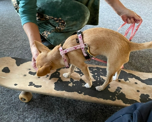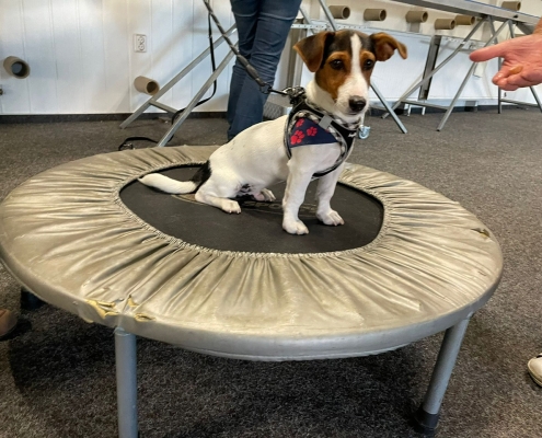 - Grundtraining der Grundkommandos „Sitz“, „Platz“ und „Bleib“