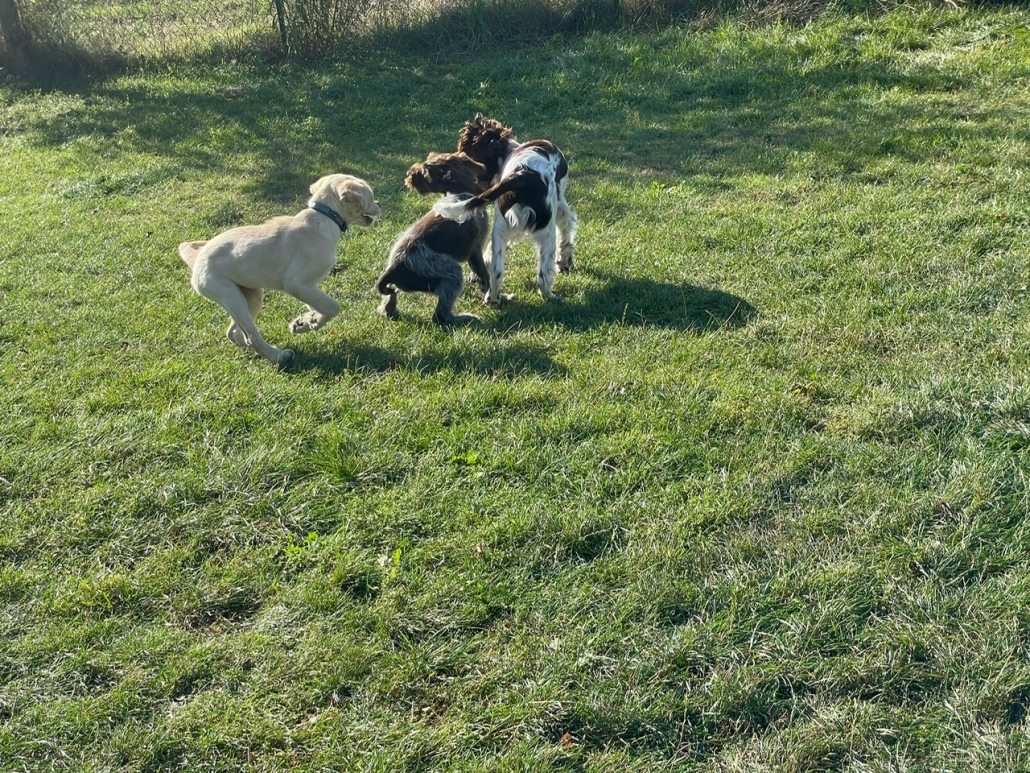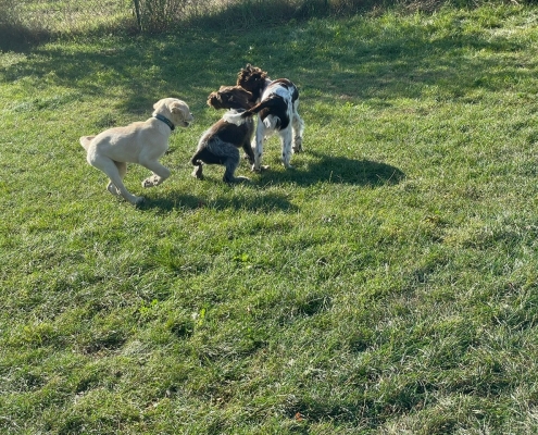Außerdem lernt der kleine Hund viele Dinge für sein späteres Leben wie zum Beispiel mit den eigenen Grenzen und den Grenzen anderer umzugehen, er übt sich in Kommunikation mit Artgenossen und fremden Menschen. Er geht aber auch schon die ersten Schritte zur Grunderziehung.